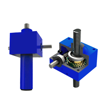 S型螺旋升降機的原理為蝸桿驅動蝸輪旋轉,蝸輪中間為內螺紋孔機構(與絲杠相嚙合),再將旋轉運動傳遞至絲杠上下直線運動。