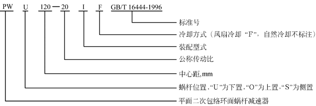 PW型平面二次包絡(luò)環(huán)面蝸桿減速機(jī)型號(hào)與標(biāo)記(GB/T16449-1996
