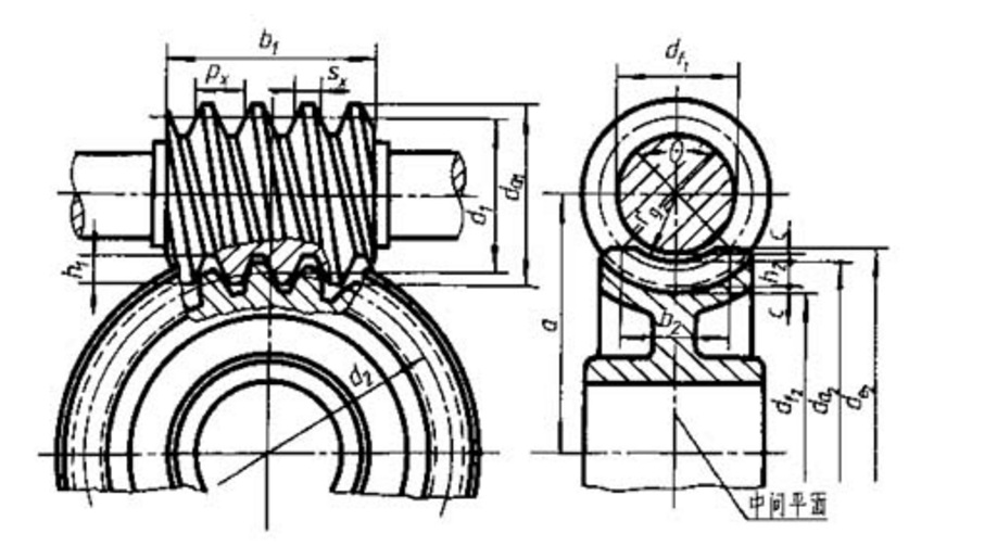 蝸輪蝸桿傳動_常用的蝸桿為圓柱型阿基米德蝸桿,這種蝸桿的軸向齒廓是直線軸向斷面呈等腰梯形與梯形螺紋相似。蝸桿的齒數稱為頭數相當于螺紋的線數常用單頭或雙頭。一般情況下蝸桿為主動軸,材料是密度大的合金鋼不易磨損,蝸輪為從動軸材料為青銅。