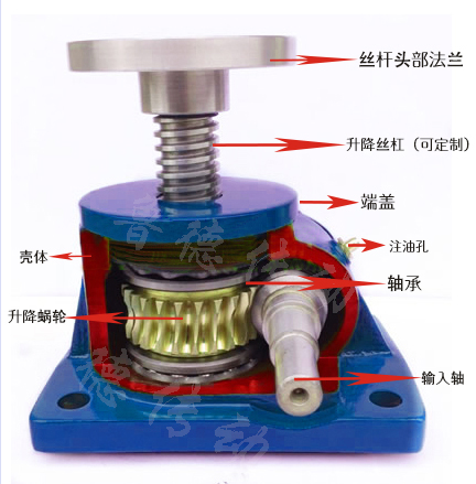 絲桿升降機由電機或者手動驅(qū)動蝸桿旋轉(zhuǎn),蝸桿驅(qū)動蝸輪減速旋轉(zhuǎn),蝸輪內(nèi)腔加工為內(nèi)螺紋,驅(qū)動絲杠上下移動,由于內(nèi)部有蝸輪蝸桿,絲杠的減速作用,達到放大推力的作用。魯?shù)聜鲃蛹庸?a href='/product/ldjsgsjj.html'>蝸輪蝸桿及成套配套設(shè)備多年經(jīng)驗豐富,技術(shù)工程師可提供產(chǎn)品選型設(shè)計安裝全套服務(wù)。